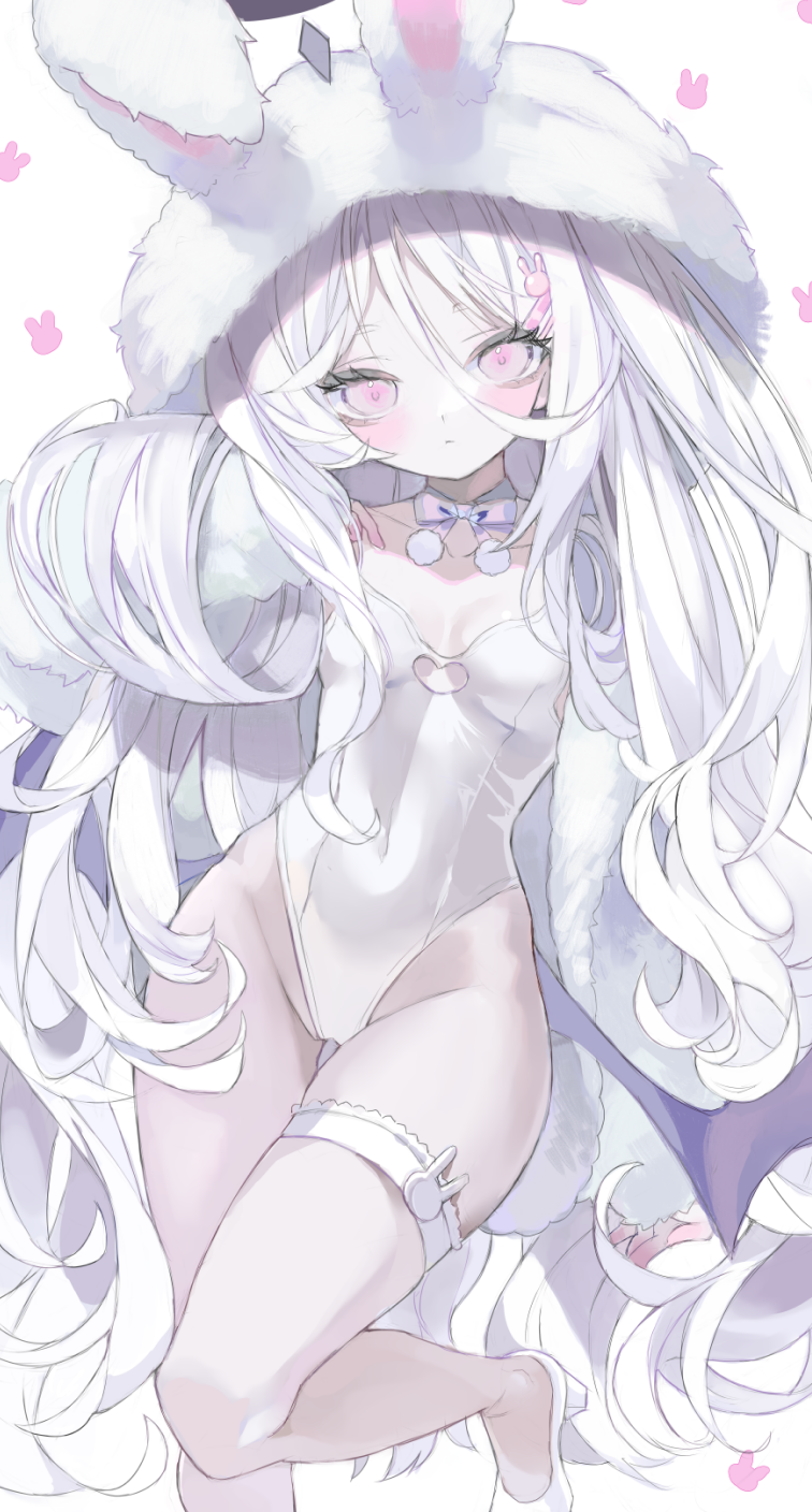1girlanimal earsblack halodemon girldemon wingshalolong hairlooking at viewerlow wingsmarant38playboy bunnypurple eyesrabbitrabbit earssolostandingvery long hairwhite hairwings