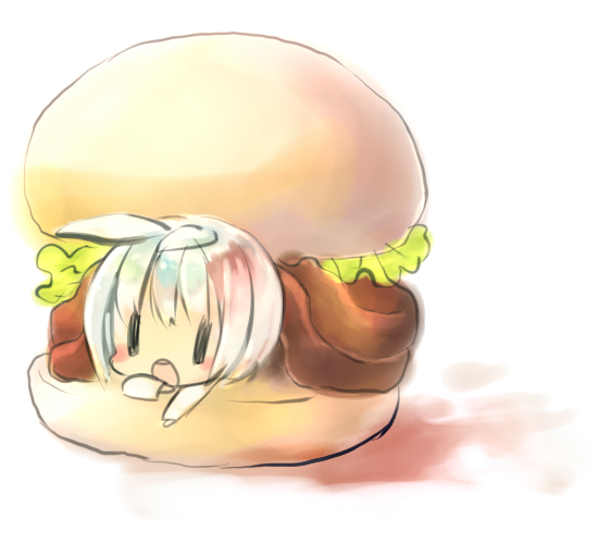 1boy1girlanimal earsburgerchibifemale focusfoodfood girlin foodmini personminigirlsolowhite hair