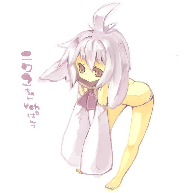 ahogealbinoanimal earsbarefootbent overdetached sleeveslong sleevespantiesred eyessolounderwearwhite hair