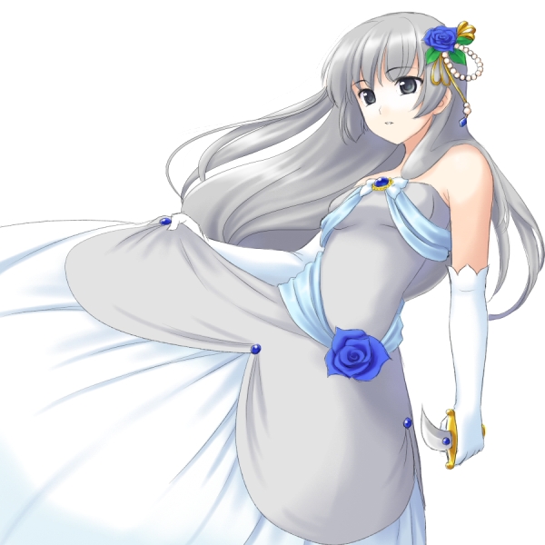 exa (koyuru), ryougi shiki, kara no kyoukai, commentary request, highres, 1girl, alternate costume, animal ears, black bow, black bowtie, black leotard, blush, bow, bowtie, brown eyes, brown hair, detached collar, fake animal ears, fishnet pantyhose, fishnets, grey background, highleg, highleg leotard, leotard, long hair, pantyhose, parted bangs, playboy bunny, rabbit ears, simple background, solo, strapless, strapless leotard, wrist cuffs