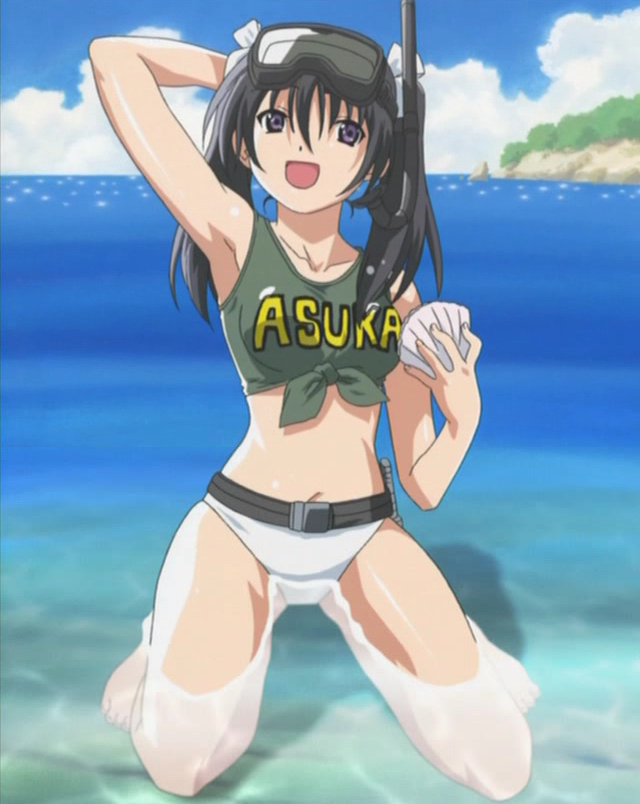00s1girlarm behind headarmpitsbarefootbeachbeltbikinibikini bottom onlyblack hairdaydiving maskfemale focusgoggleshappykneelingknifeoceanoutdoorspurple eyesseashellshellshirtsnorkelsoloswimsuittank toptankinitied shirttwintailswadingwater