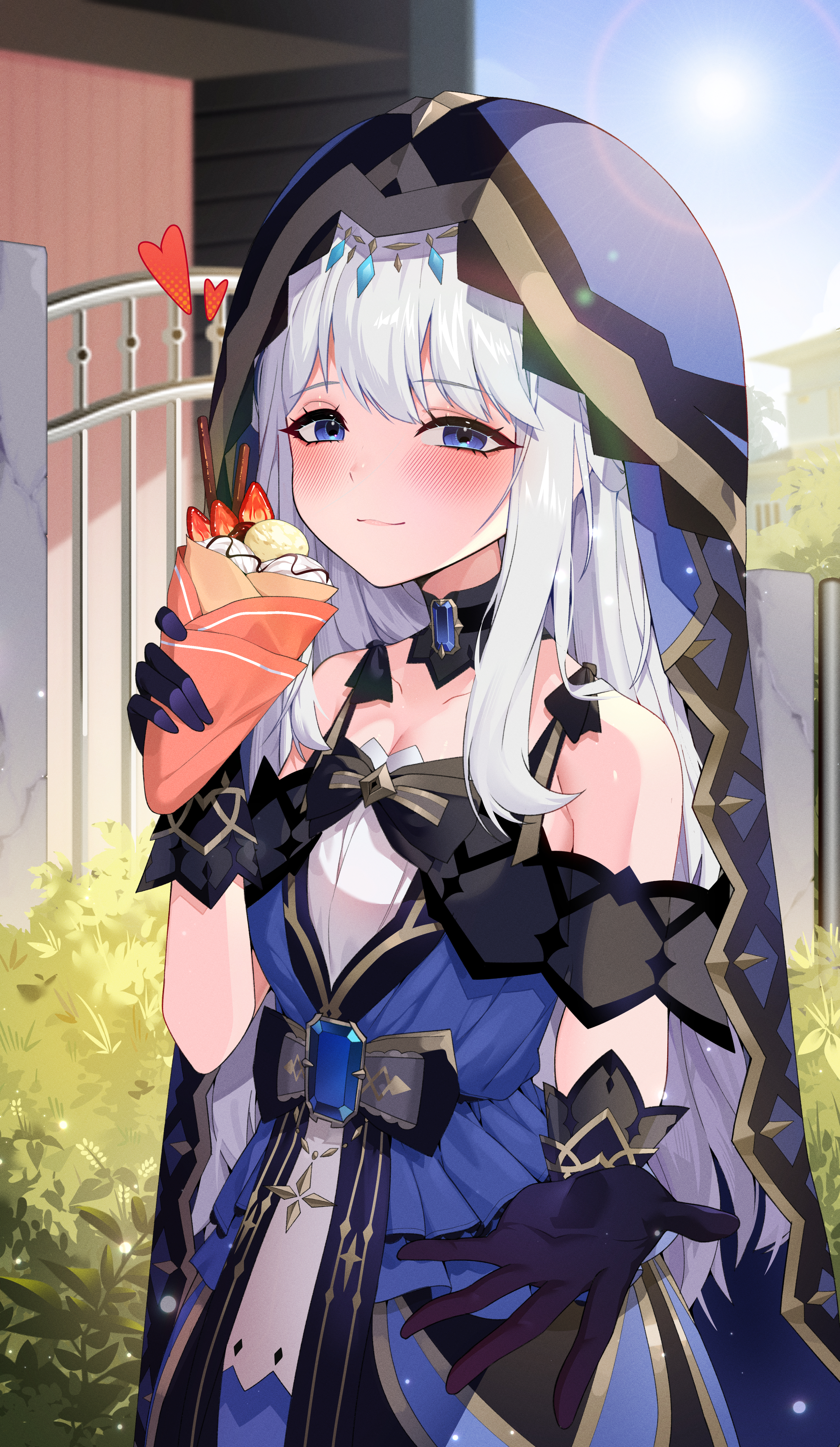 commonalty, shorekeeper (wuthering waves), wuthering waves, absurdres, commentary, highres, paid reward available, variant set, 1boy, 1girl, armlet, bar censor, blue dress, blue hair, blue nails, blush, breasts, censored, closed mouth, colored eyelashes, dress, erection, fellatio, fingernails, from above, hand up, jewelry, licking, licking penis, looking at viewer, looking up, medium breasts, nail polish, oral, penis, pov, purple eyes, sitting, sleeveless, sleeveless dress, tongue, tongue out
