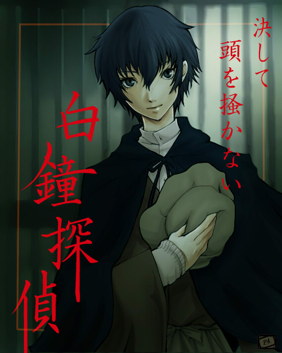 haejeo1008, fox mask (silent hill), silent hill (series), silent hill f, absurdres, highres, 1boy, copyright name, cropped torso, finger to own chin, flower, fox mask, japanese clothes, kimono, long hair, low ponytail, male focus, mask, ponytail, smile, solo, spider lily, white hair, white kimono, yellow eyes