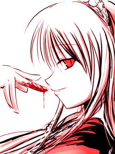 00s1girldrippingfemale focuslooking at viewermonochromered eyessidelockssimple backgroundsolowhite background