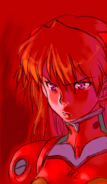 1girlangrybodysuitbreastsfemale focuslong hairmecha pilot suitpink eyesplugsuit (evangelion)red backgroundred bodysuitred hairserioussoloupper body