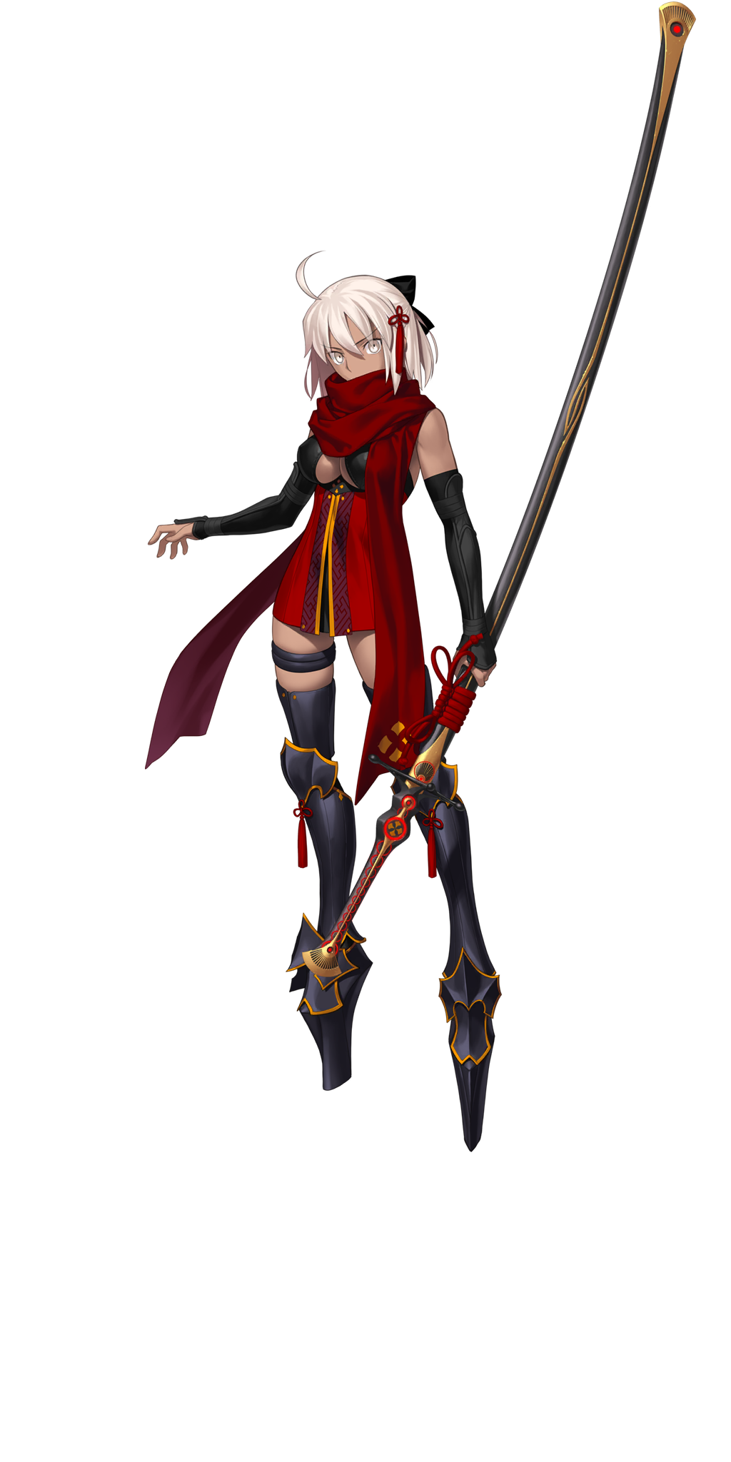 fukase, vocaloid, highres, 1boy, animal hat, ankle boots, arm at side, asymmetrical clothes, bandaid, bandaid on face, bandaid on nose, boots, border, bow, bowtie, cane, coat, crossed bandaids, film grain, flag, full body, grey border, grey pants, hair between eyes, hand up, hat, holding, holding cane, j inugami9, looking at viewer, male focus, microskirt, nail polish, outside border, pants, pleated skirt, pocket, rabbit hat, red bow, red bowtie, red eyes, red hair, red nails, red skirt, short hair, simple background, skirt, solo, standing, tongue, tongue out, top hat, twitter username, white background, white boots, white coat, white hat