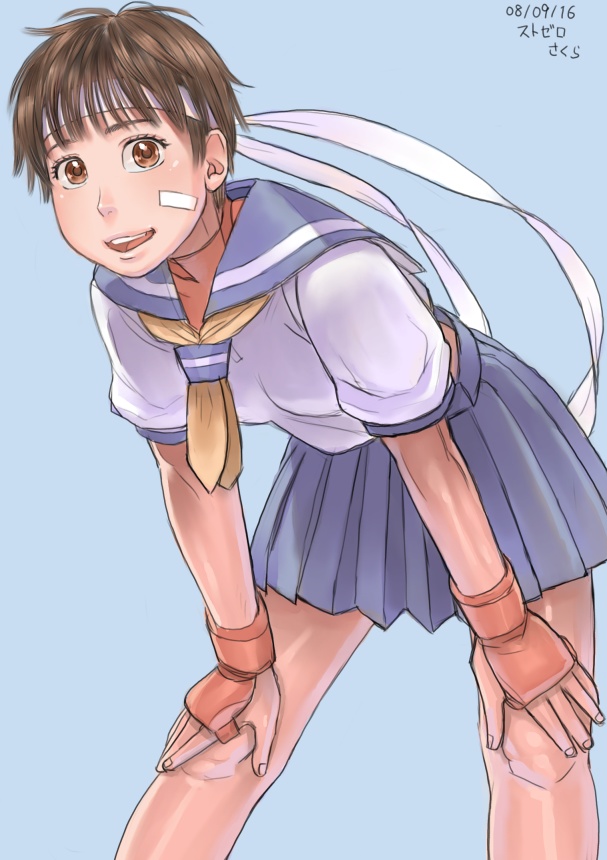 yaji (kitizoto), futami eriko, kimi kiss, 1girl, blue panties, female focus, ketchup, lying, panties, pantyshot, school uniform, serafuku, solo, thigh gap, thighs, underwear