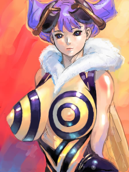 1girlantennaearthropod girlbee girlbreastsfemale focusinsect girlinsect wingslarge breastsmonster girlpurple eyespurple hairshort hairsolid eyessolowings