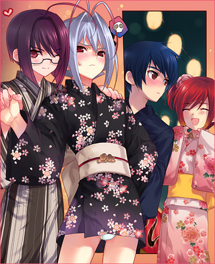 :d4boysahogeantenna hairblue hairblushclosed eyesglassesheartholding handsjapanese clotheskimonolanternlooking at viewermale focusmultiple boysobione eye closedopen mouthpantiespaper lanternred eyesred hairsashshort hairsmiletrapunderwearwhite pantieswink