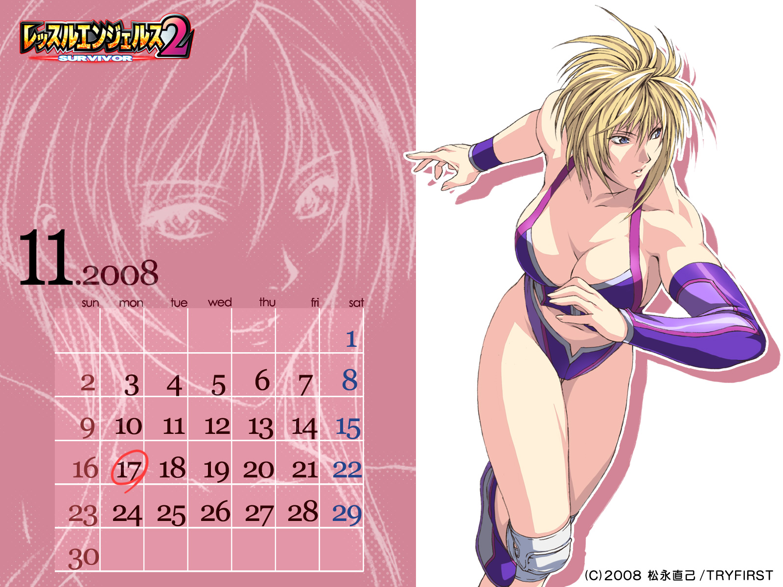 1girlblonde hairblue eyesbreastscalendarcleavagefemale focusknee padslarge breastsshadowshort hairsolo