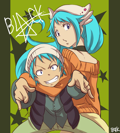 :d00s1boy1girlaqua hairbare shouldersbeanieclenched teethdual personagenderswapgenderswap (mtf)hathead tiltheterohuglong hairlong sleeveslooking at vieweropen mouthoutstretched armssmilespread legsteethvery long hairvestwide-eyed