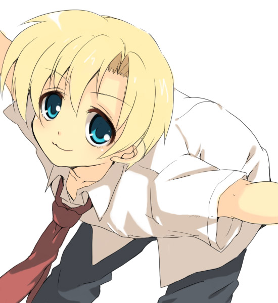 00s1boyblonde hairblue eyescollared shirtmale focusnecktiered necktieshirtshort hairsimple backgroundsolowhite background