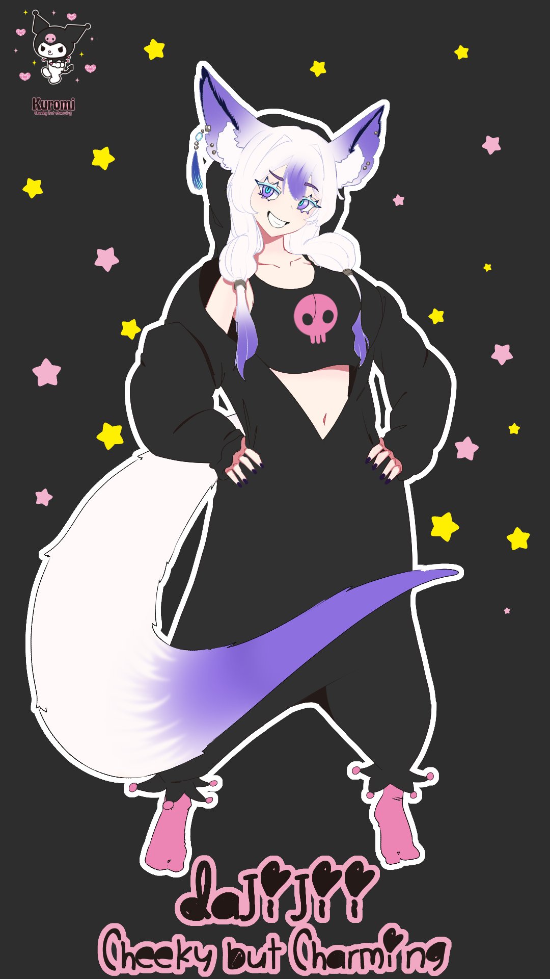 20252girlsbellyblack backgroundcollarboneenglish textfox girlkuromi (cosplay)multiple girlspink socksskull printsockssolostanding