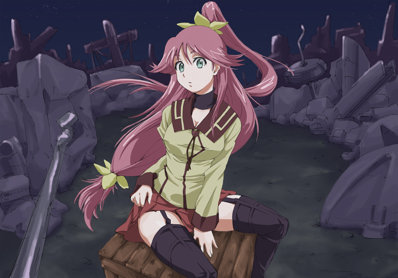 matsunaga sara, yagami coco, 5pb., ever 17, game cg, 2girls, brown hair, multiple girls, pink hair, ribbon, school uniform, serafuku, thighhighs