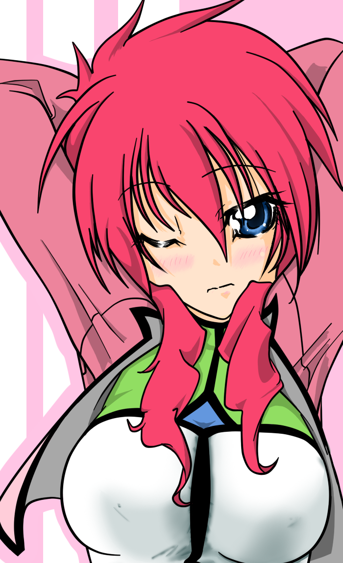 fugi jis, lowres, 2girls, ass, bare shoulders, black gloves, blue eyes, breasts, buckle, collarbone, corset, couch, elbow gloves, garter belt, garter straps, girl on top, gloves, groin, hip focus, jewelry, long hair, multiple girls, nipples, orange hair, pink hair, red hair, ring, short hair, small breasts, sunlight, tattoo, yuri