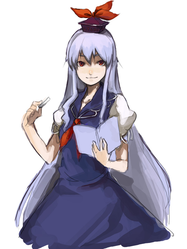 morogami ryou, inaba tewi, reisen udongein inaba, touhou, 2girls, animal ears, chibi, female focus, multiple girls, outdoors, rabbit ears, red eyes, romaji text, sitting, white background