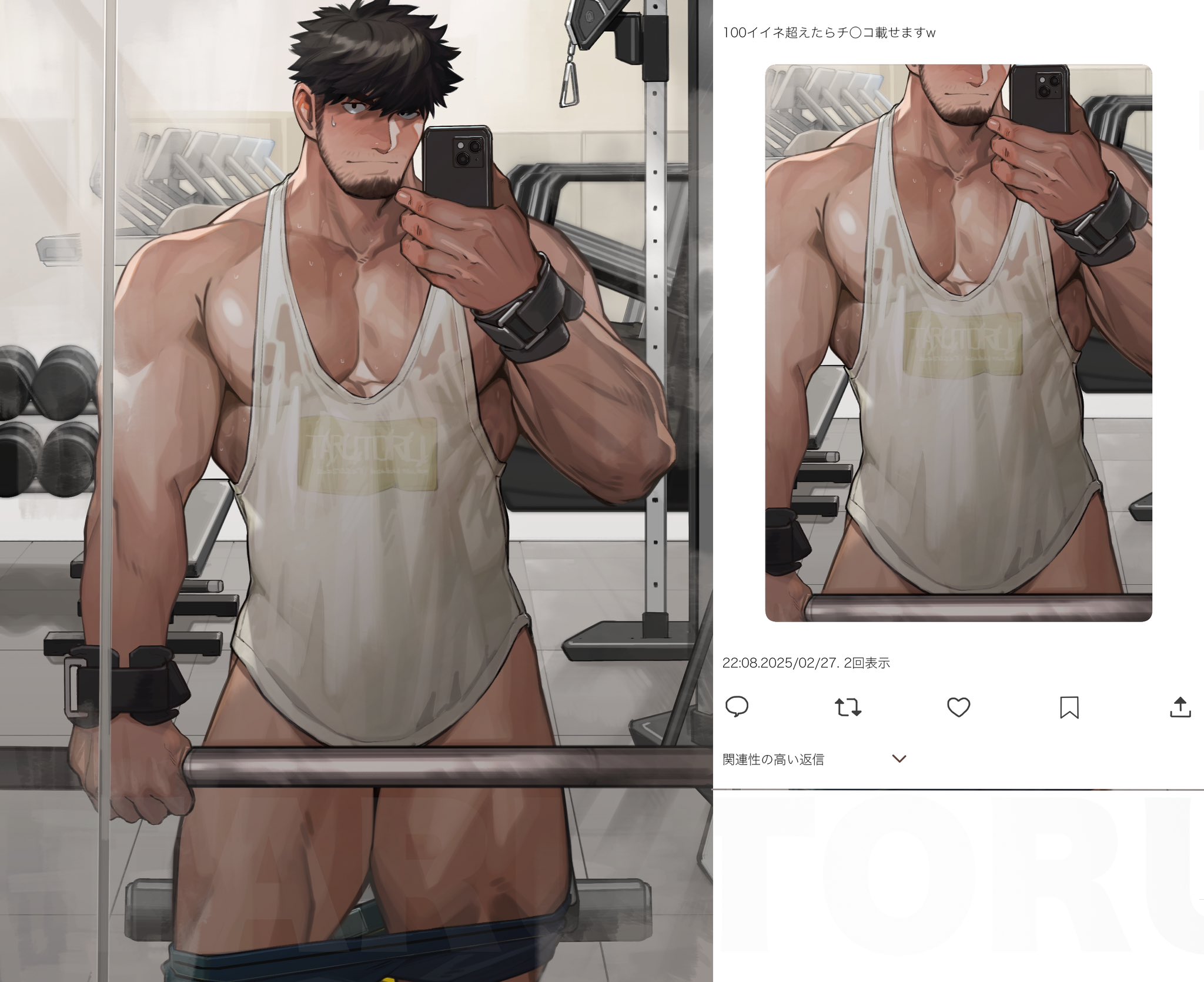 igarashi ran (igatz), igatz, chocolate misu, bakuretsu hunters, bad id, bad pixiv id, 1girl, bdsm, breasts, dominatrix, female focus, garrote, hair over one eye, hat, huge breasts, large breasts, leather, lipstick, makeup, naked suspenders, peaked cap, red eyes, revealing clothes, skull, solo, suspenders, topless female, white background, wire