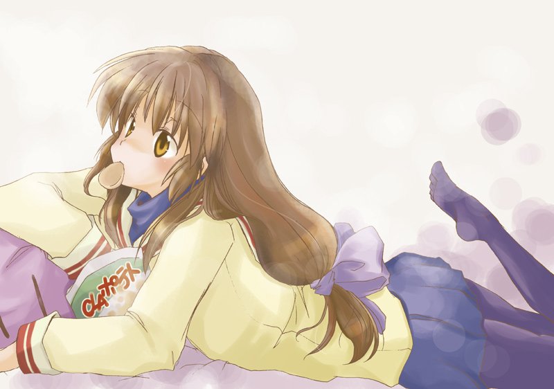 00s1girlblue skirtbrown eyesbrown hairchips (food)eatingfeetfemale focusfoodlong hairlyingmouth holdno shoeson stomachpantyhosepleated skirtpotato chipsschool uniformskirtsockssolovery long hair