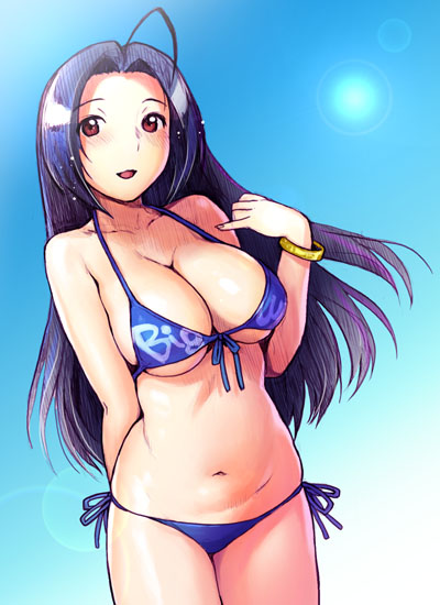 00sahogebikiniblue bikiniblue hairbraceletbreastsjewelrylarge breastslong hairred eyesside-tie bikini bottomsmileswimsuitunderboob