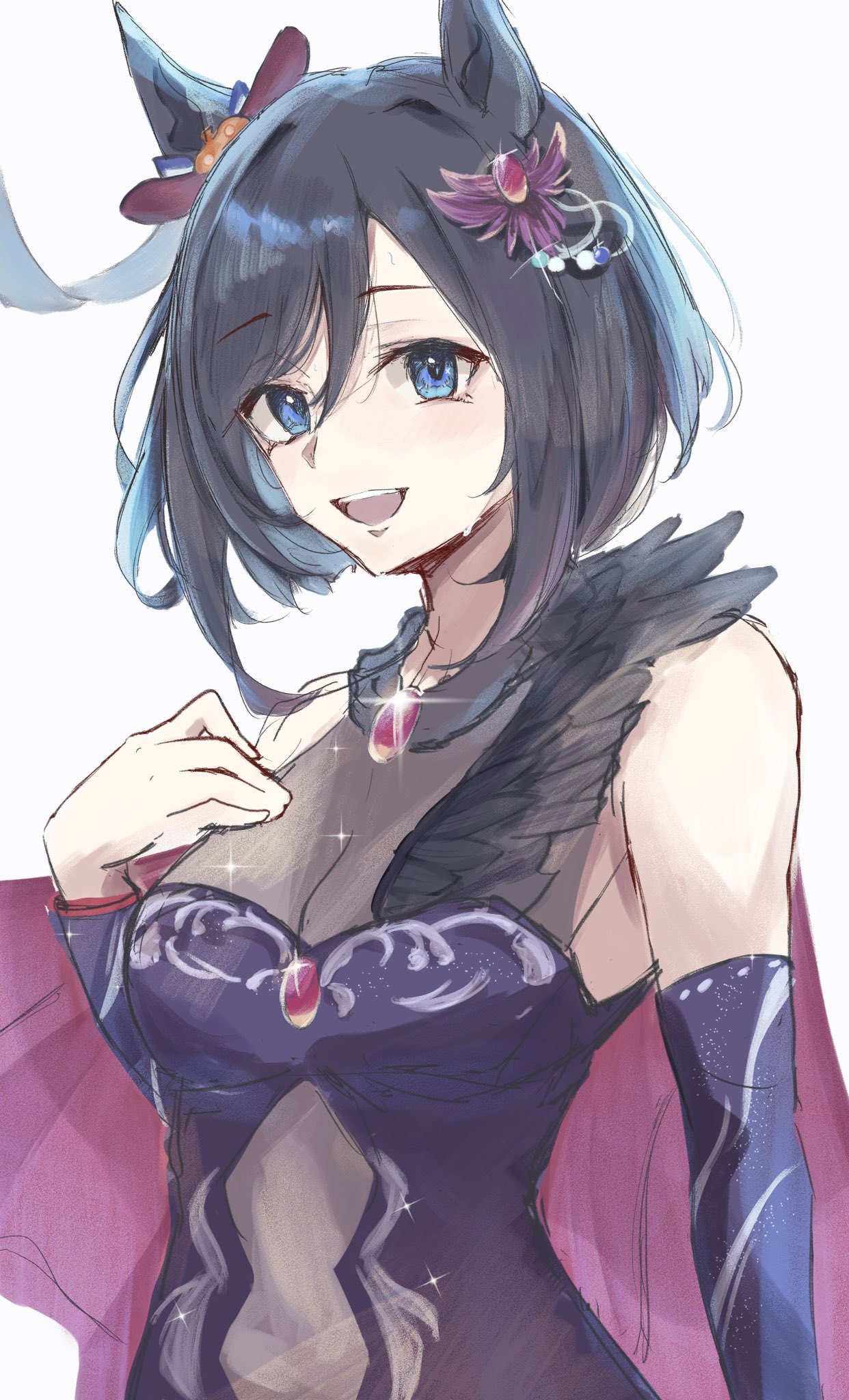 yoake (yoake 04), ripple star queen, zero two (kirby), kirby (series), kirby 64, nintendo, highres, 1girl, black hair, blush, bow, crown, fairy, fairy wings, glasses, hair bow, halo, heart, long hair, pink bow, pink skirt, purple background, purple eyes, skirt, sleeves past fingers, sleeves past wrists, wings