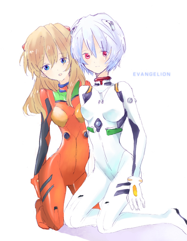 2girlsblue eyesblue hairmecha pilot suitmultiple girlspale skinplugsuit (evangelion)red eyesred hairshort hair