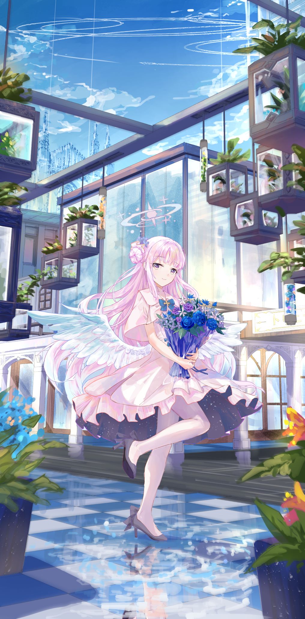 dogs (dlrkdejr26), original, absurdres, commission, highres, large variant set, variant set, 1girl, black jacket, black shoes, blue skin, borrowed character, breasts, colored skin, earrings, flower tattoo, full body, gluteal fold, hair over one eye, high heels, jacket, jewelry, large breasts, leg tattoo, lips, looking at viewer, nipples, nude, open mouth, pink eyes, pointy ears, purple hair, pussy, shoes, short hair, smile, solo, stiletto heels, tattoo, wide hips