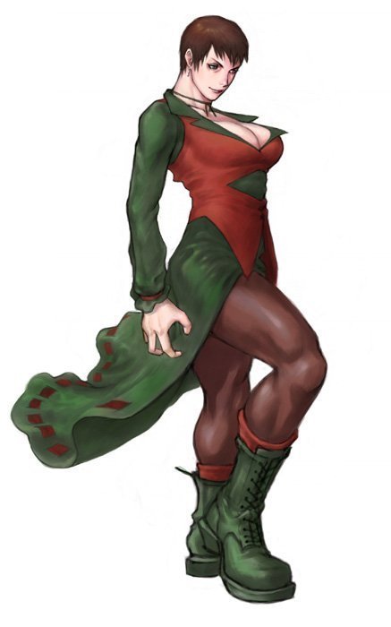 1girlbootsbreastsbrown pantyhosecleavagecollared dressdressfemale focusfull bodygreen bootsmuscularpantyhosesimple backgroundsolostandingwhite background