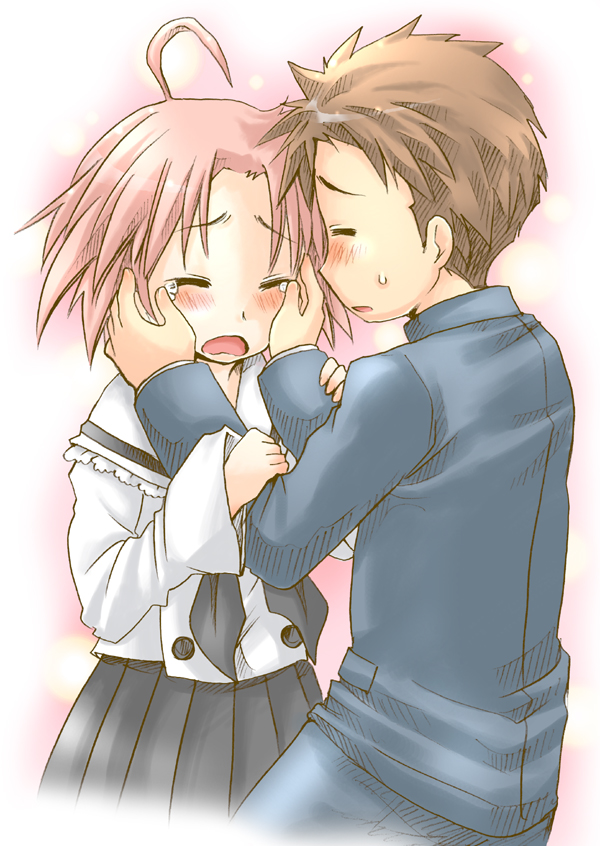 kousaka tamaki, yuzuhara konomi, to heart (series), to heart 2, lowres, 00s, 2girls, ahoge, chibi, chibi only, heart, long sleeves, multiple girls, musical note, oekaki, pleated skirt, quaver, school uniform, serafuku, skirt