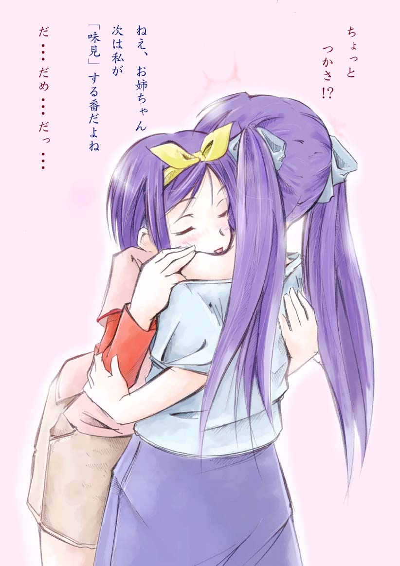 00s2girlsblushcasualclosed eyesfemale focushugincestkisslong hairmultiple girlspurple hairshort hairsiblingssistersskirttonguetwincesttwinsyuri