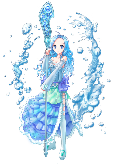 1girlblue eyesblue hairdetached sleevesfantasyfemale focuslong hairmatching hair/eyessolostaffthighhighswater