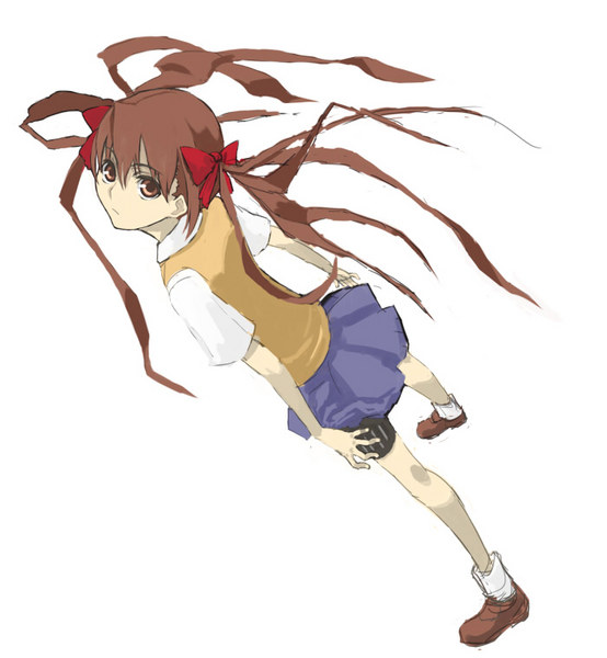 00s1girlbrown eyesbrown hairfemale focusfull bodyhair ribbonribbonschool uniformsimple backgroundsolothigh straptwintails