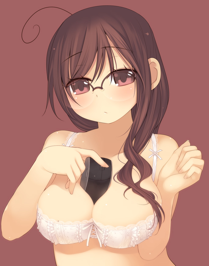 1girlahogebetween breastsbowbow brabrabreastsbrown hairfemale focusglasseslarge breastslingeriered eyesribbonsolounderwear