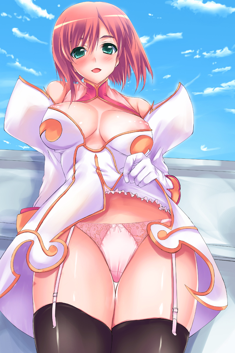 00s1girlblushbreastsclothes liftclouddaydressdress liftelbow glovesfemale focusgarter beltglovesgreen eyeslarge breastsnipple slipnipplespantiespink hairpink pantiesshort hairskysolothighhighsunderwear
