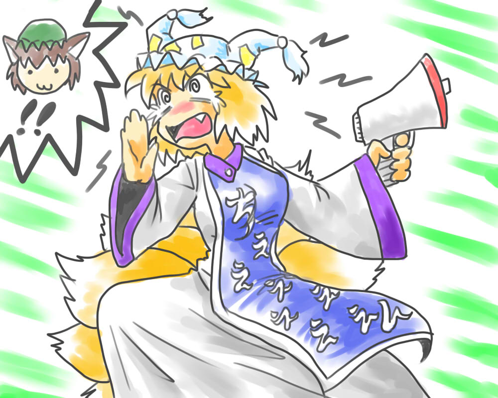 :31boy2girlsbamboobamboo forestblonde hairclothes writingexpressive clothesfangfemale focusforestfox tailhatmegaphonemultiple girlsmultiple tailsnaturesolotailtears