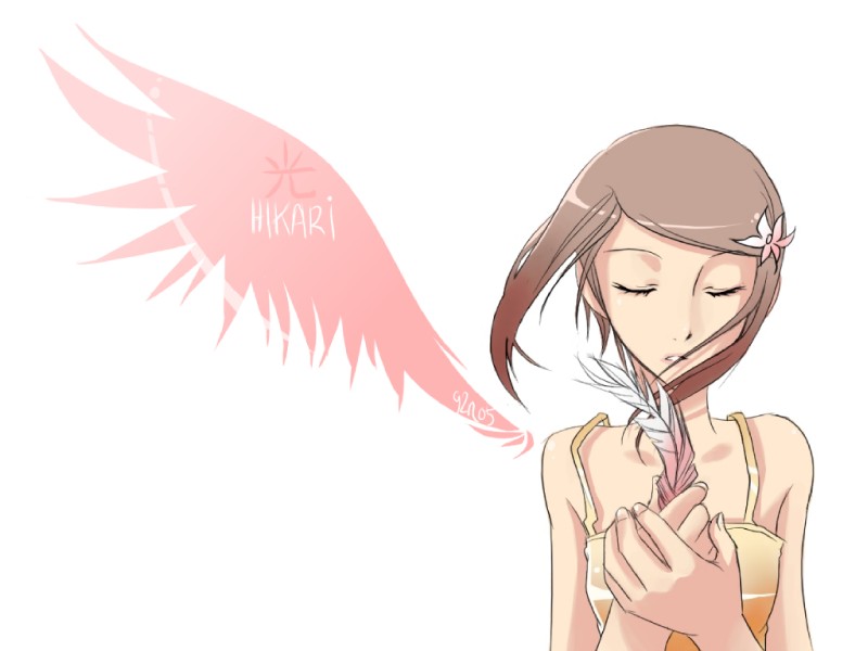00s1girlbrown haircamisoleclosed eyesfeathersfemale focushair ornamentshort hairsimple backgroundsingle wingsolowindwings