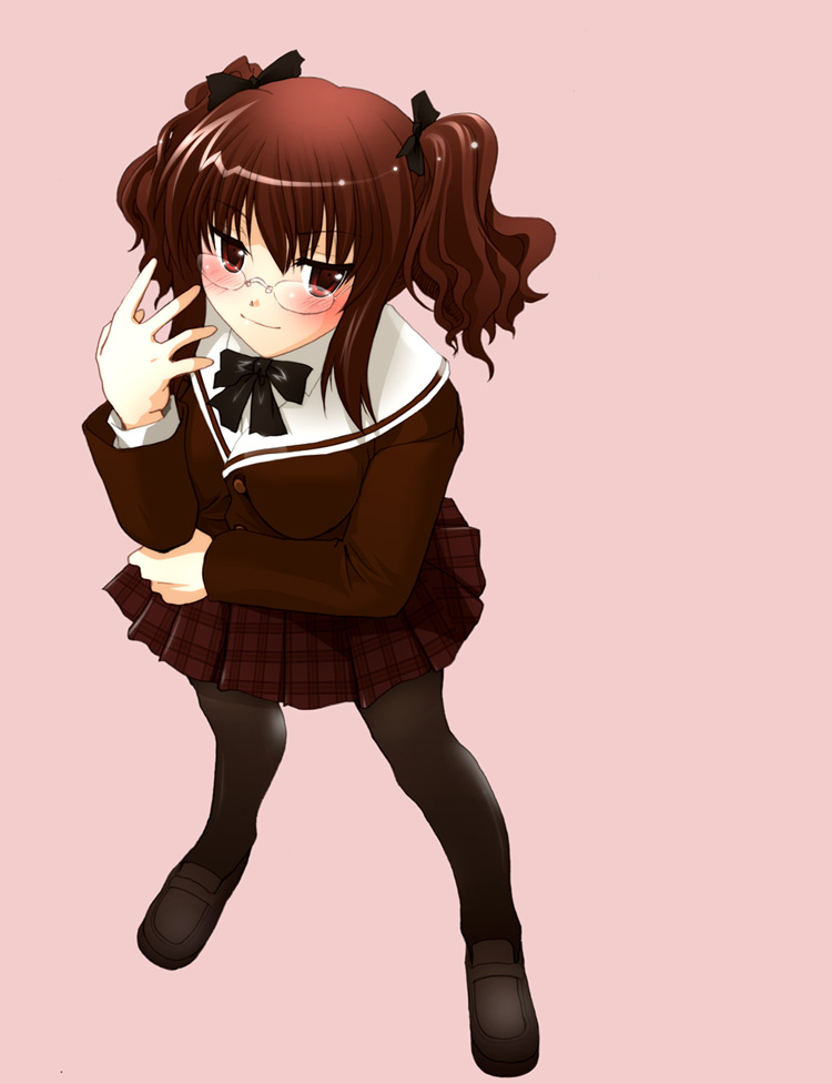 1girlblushbrown eyesbrown hairfemale focusfrom aboveglasseslegspantyhoseschool uniformserafukushort hairsolostandingtwintails