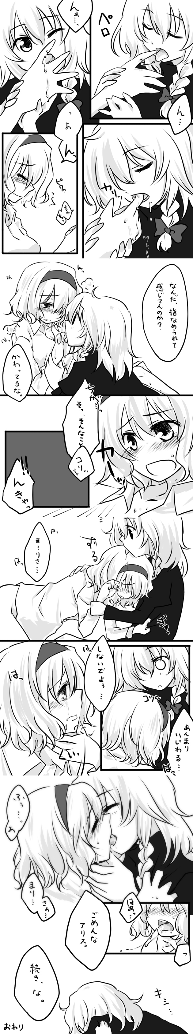 cindy717, houraisan kaguya, yagokoro eirin, touhou, absurdres, commentary request, highres, 2girls, arrow (projectile), blue dress, blue hat, border, bow, bow (weapon), braid, braided ponytail, brown eyes, brown hair, constellation print, covered mouth, cross, dress, frilled dress, frills, grey eyes, grey hair, hair bow, hair intakes, hat, holding, holding arrow, holding bow (weapon), holding weapon, jitome, light blush, light frown, long hair, multiple girls, nurse cap, pink sleeves, red cross, red dress, sash, two-tone dress, weapon, white border, white bow, white sash
