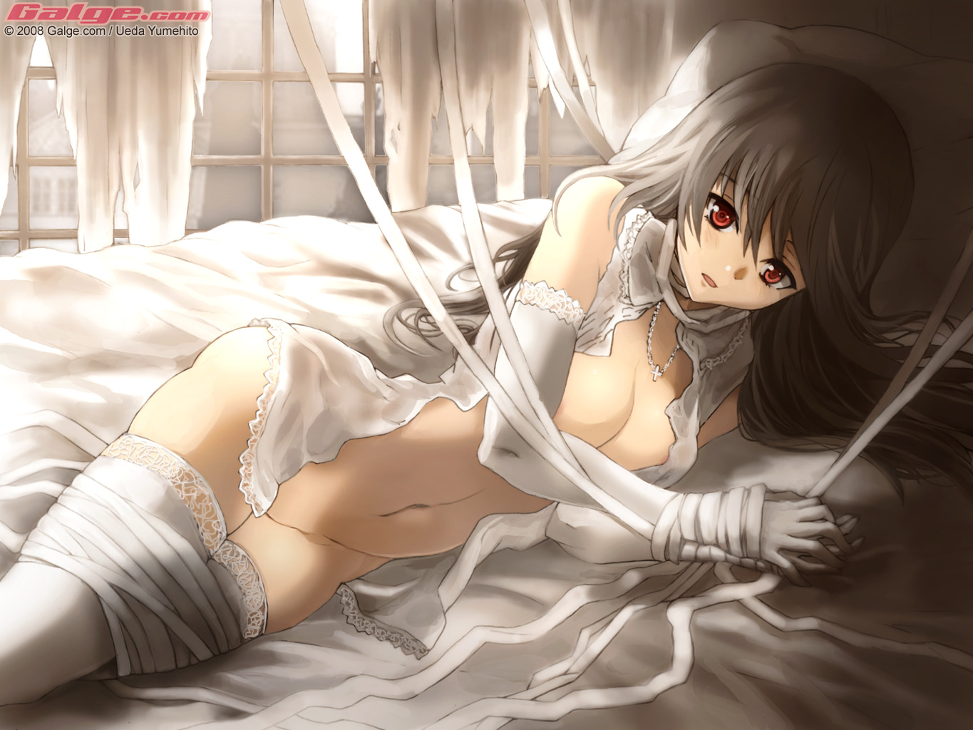 yayoi asuka, kanon (duel masters), duel masters, duel masters play's, absurdres, highres, 1girl, ahoge, black bow, black pantyhose, blue eyes, blush, bow, breasts, clothing cutout, dress, grey hair, hair bow, long hair, looking at viewer, medium breasts, navel, navel cutout, pantyhose