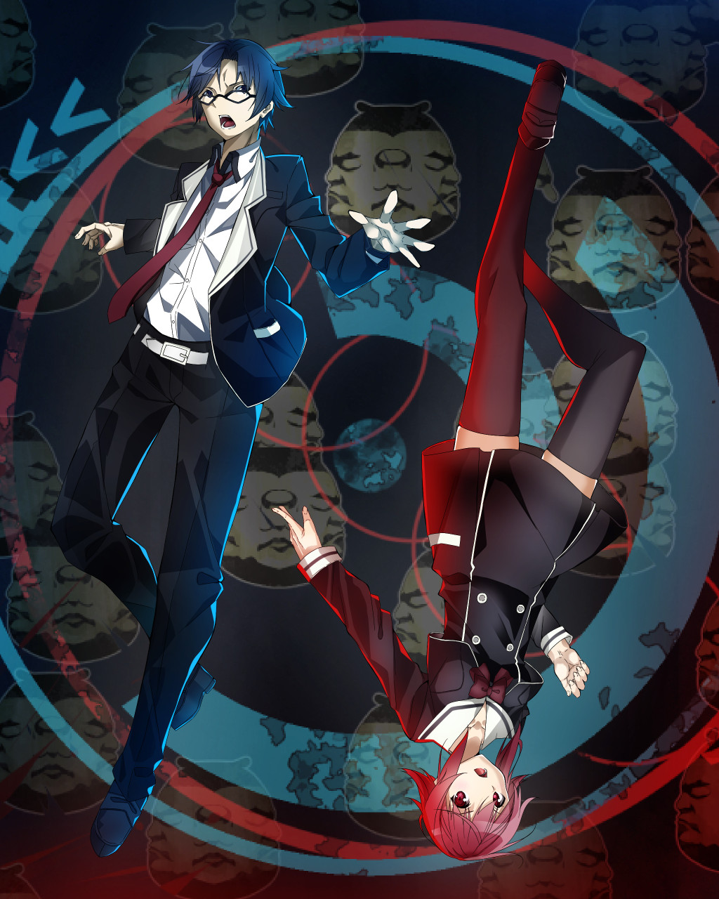 1boy1girlblazerblue eyesblue hairglasseshekiho academy school uniformjacketlong sleevesopen clothespink hairschool uniformshort hairsumo stickerthighhighs
