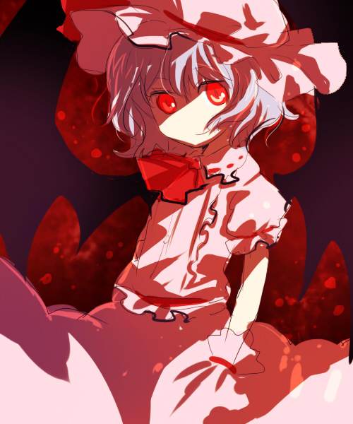 1girlcowboy shotdressfemale focusfrillshatlooking at viewermob cappuffy short sleevespuffy sleevesred eyesshort hairshort sleevessolowhite dress