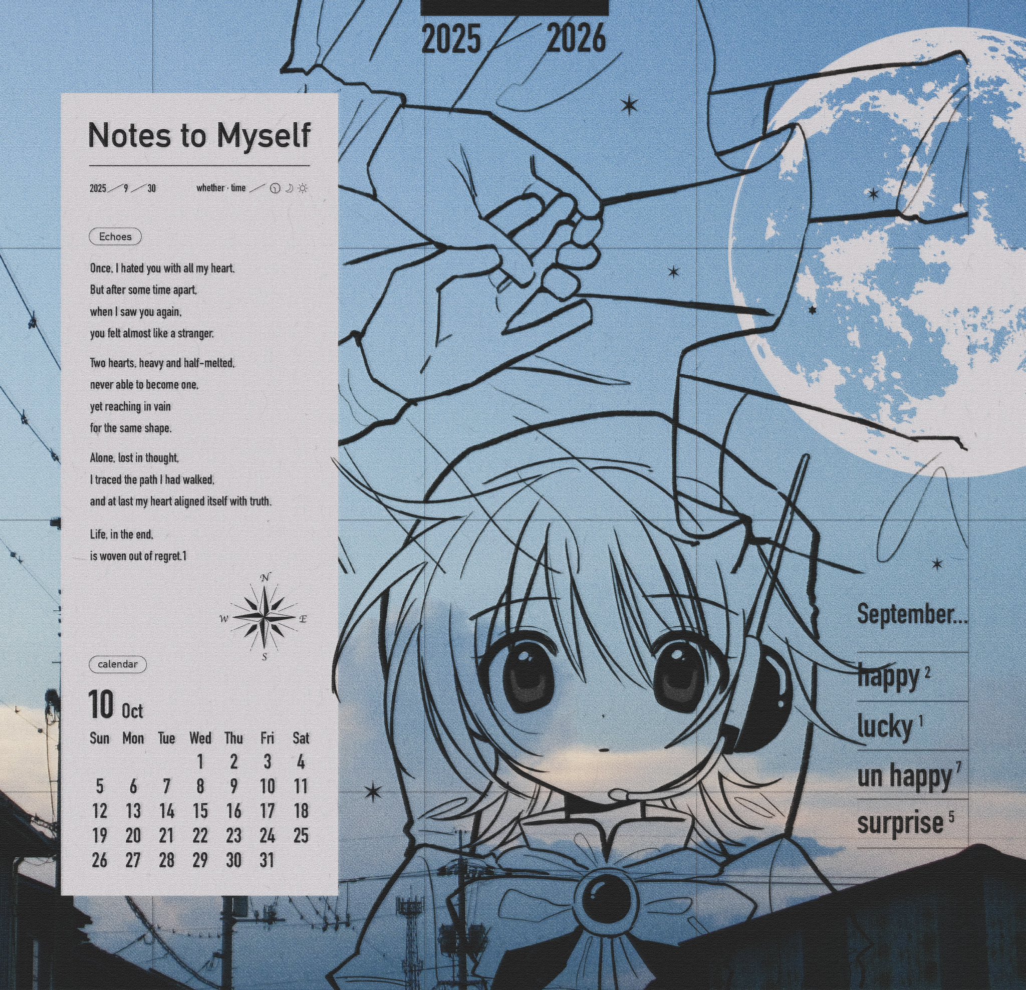 1girlarms behind backbowbowtiecalendar (object)dayenglish textfull moonhatheadsetlineartlooking at viewermoonoutdoorsown hands together