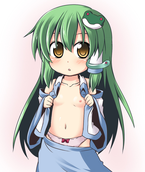 inkerton-kun, super pochaco, usagi (chiikawa), chiikawa, nitroplus, highres, 1girl, belly, blonde hair, breasts, closed mouth, cowboy shot, hand up, headphones, jewelry, large breasts, looking at viewer, midriff, navel, necklace, one eye closed, plump, red eyes, simple background, smile, solo, twintails