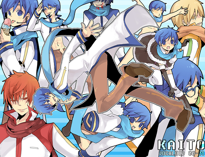 1girl3boysblue eyesblue hairblue scarfgenderswapgenderswap (mtf)glassesglovesmale focusmultiple boysscarfshort hair
