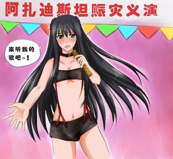 00s1girlaqua eyesbare armsbare legsbare shouldersblack chokerblack collarblack hairblack shortsblack tube topblue eyesblushbreastschinese textchokercleavagecollarcollarbonecosplayeyebrows hidden by haireyes visible through hairfemale focushair between eyeshand upholdingholding microphonelong hairlooking at viewermedium breastsmicrophonemusicnavelneckopen mouthoutstretched armrevealing clothesround teethsheryl nome (cosplay)short shortsshortssimplified chinese textsingingsmall breastssolostraight hairstraplesssuspendersteethtube topunderboobupper teeth onlyvery long hair