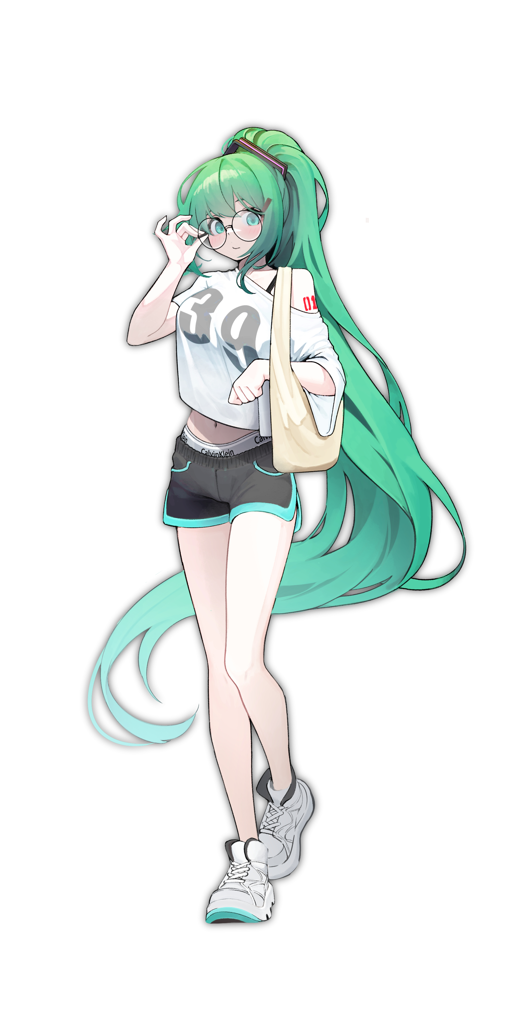 1girladjusting eyewearalternate costumealternate hair coloraqua eyesarm tattoobagblack shortsbra strapclosed mouthclothes writingcrop topcrop top overhangdolphin shortsfull bodyglassesgradient hairgreen hairhand uplong hairlooking at viewermidriffmulticolored hairnavelnumber tattoooff shoulderoff-shoulder shirtpantiesponytailprint shirtround eyewearshirtshoesshort shortsshort sleevesshortsshoulder bagsimple backgroundsneakerssolosports pantiestattoounderwearunderwear writingvery long hairwalkingwhite backgroundwhite pantieswhite shirtwhite shoes