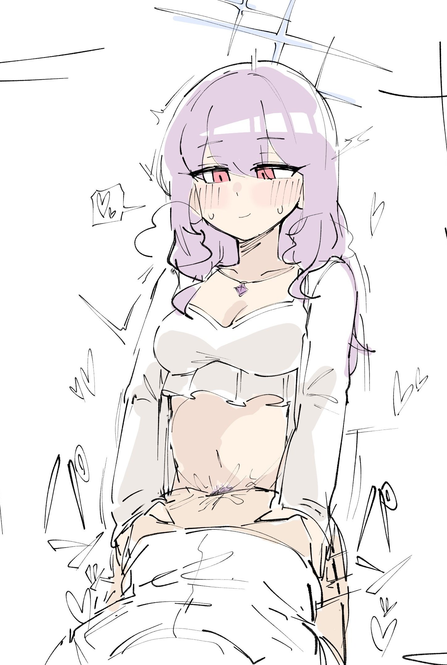 1boy1girlbikiniblue haloblushbottomlessbreastsclosed mouthclothed sexfuta with malefutanarihaloheartjacketlong hairlong sleevesmedium breastsnavelpurple hairred eyessexsmilesolo focusspoken heartswimsuitwhite backgroundwhite bikiniwhite jacket