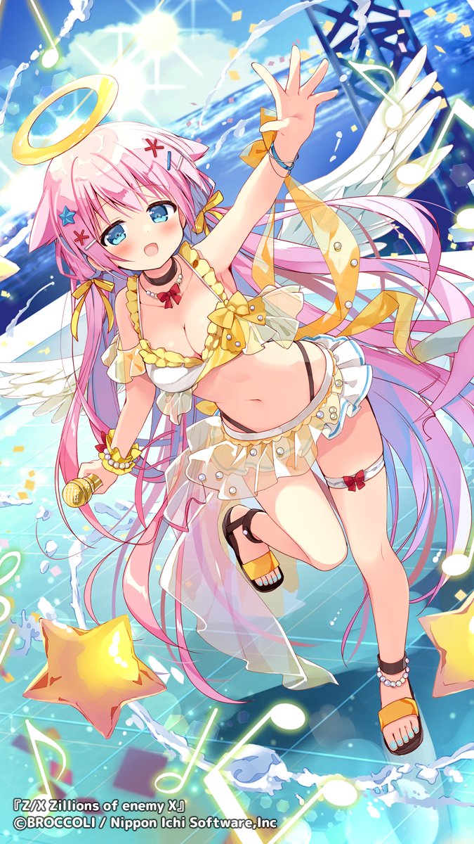 1girlaqua nailsarmpitsbikiniblack chokerblack sandalsblue eyesblue skybowbow bikinibreastschokercleavagecloudcloudy skyconcertconfettieighth notefeathered wingsfrilled bikinifrillshair ornamenthair ribbonhaircliphalf notehaloholdingholding microphonelong hairmarie (z/x)microphonemusical notenail polishoceanopen mouthoutdoorspink hairquarter notered bowribbonsandalsskysolosplashingstandingstanding on one legstar (symbol)star balloonstar hair ornamentswimsuitthigh straptraditional halovery long hairwingsyellow bikiniyellow bowyellow ribbon