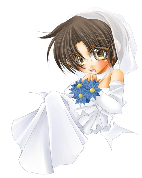 zeppachi, cirno, touhou, commentary, highres, traditional media, 1girl, blue bow, blue dress, blue eyes, blue hair, blush, bow, dress, fairy, fairy wings, hair bow, looking at viewer, open mouth, red bow, shirt, simple background, white shirt, wings