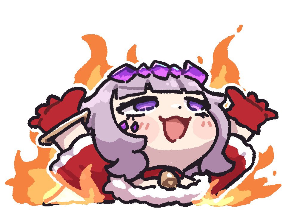 1girlarms upbellchokerfiregemglovesjewel under eyeneck bellopen mouthpurple eyespurple gemstonered chokerred glovessimple backgroundsolovirtual youtuberwhite background