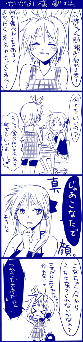 00s1boy2girls4komacomichair ribbonhairbandlong hairmonochromemultiple girlsshort hairsisterstearstwinstwintailsyuri
